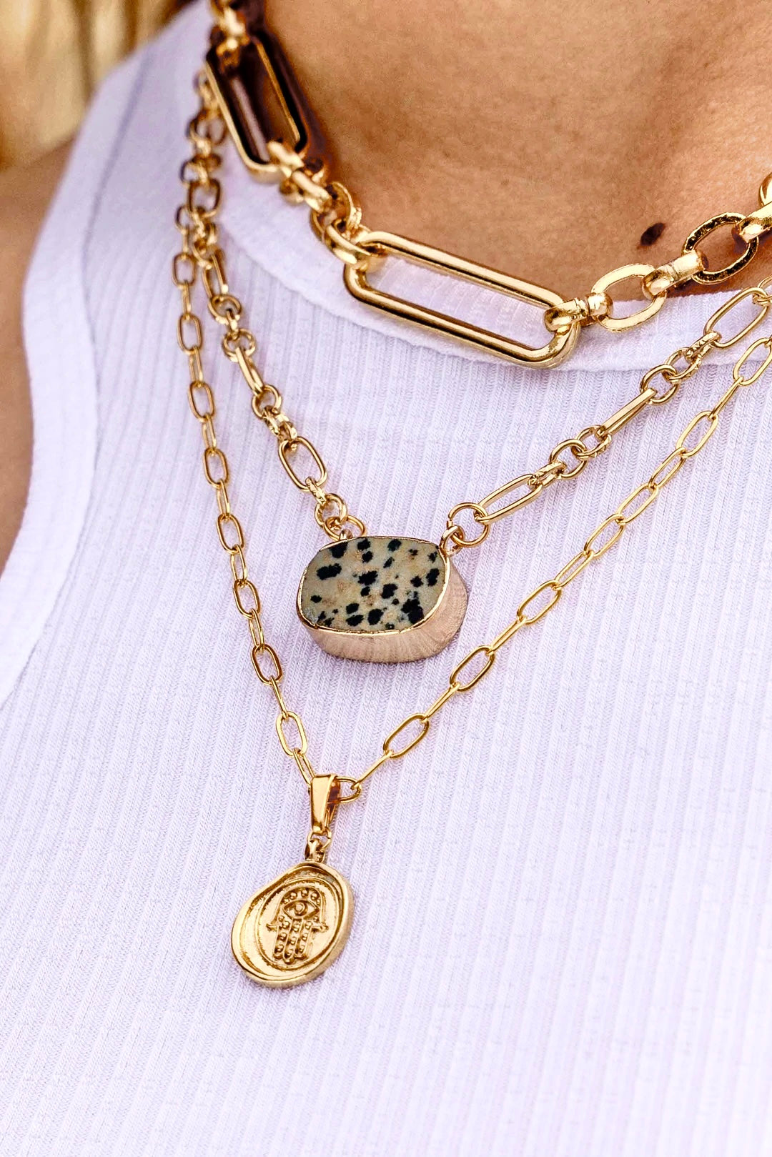 Long Layering Pink Agate Necklace