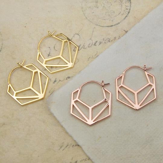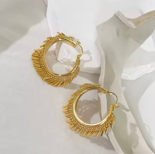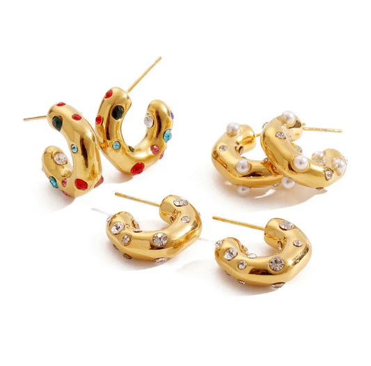 Organic Chunky Gold and Rainbow Crystal Hoop Earrings