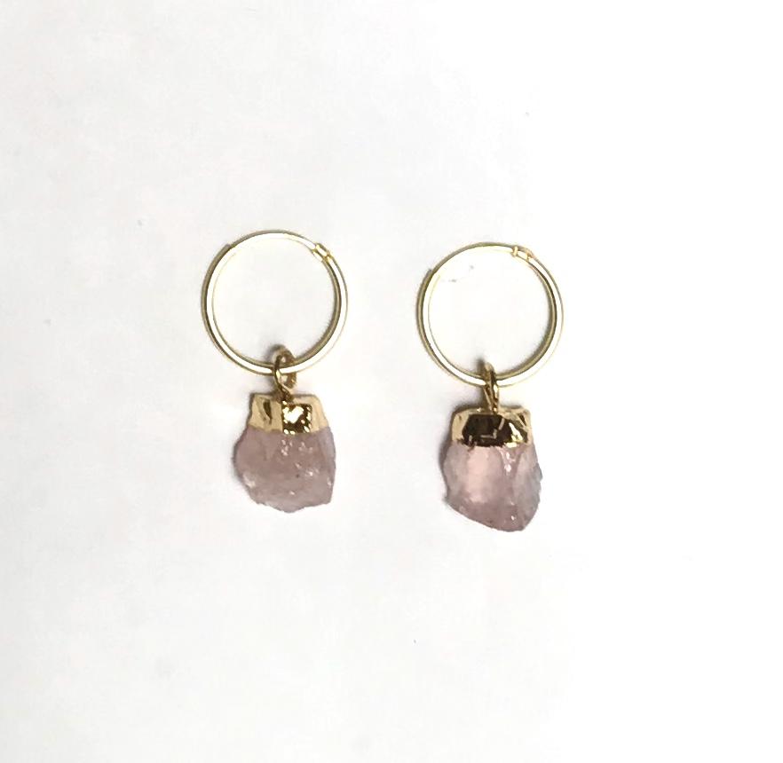 Rose Gold Drop Oval Hoop With Single White Crystal Stud