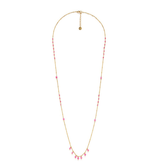 Long Layering Pink Agate Necklace