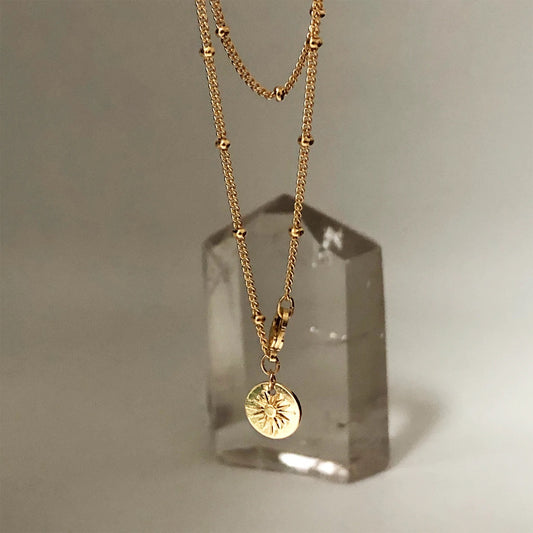 Base Chakra Dark Red Enamel Double Sided Medal Pendant on Gold Satellite Chain